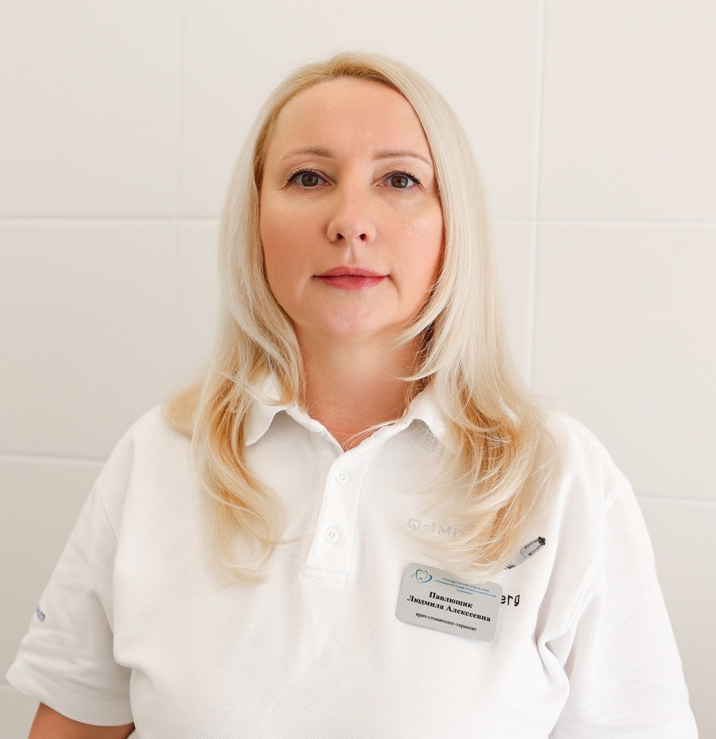 Паўлюшчык Людміла Аляксееўна Скончыла Мінскі дзяржаўны медыцынскі інстытут у 1996 г. Урач-стаматолаг-тэрапеўт, вышэйшая кваліфікацыйная катэгорыя |