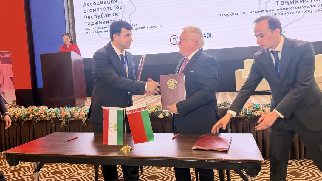 В ходе визита в Республику Таджикистан в рамках IV Международного стоматологического конгресса заместитель главного врача по контролю качества и медицинской экспертизе ГУ "РКСЦ-Университетская клиника", председатель комиссии по стоматологии Совета по сотрудничеству в области здравоохранения СНГ Матвеев А.М. подписал договор о международном сотрудничестве между ГУ "РКСЦ-Университетская клиника" и Научно-клиническим институтом стоматологии и челюстно-лицевой хирургии Республики Таджикистан.