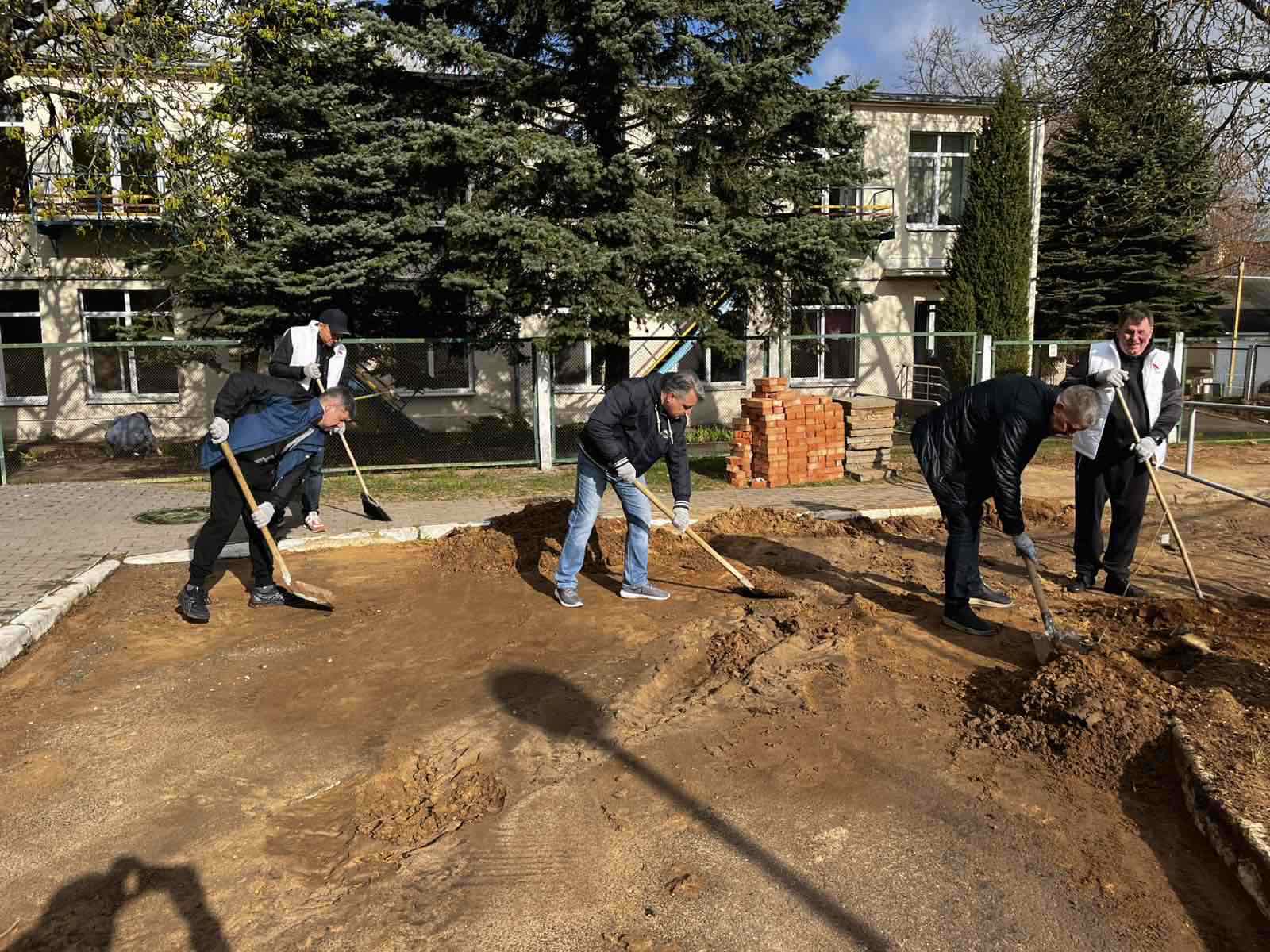 Трудовой десант был отмечен и на объекте реконструкции 3 этажного корпуса центра.